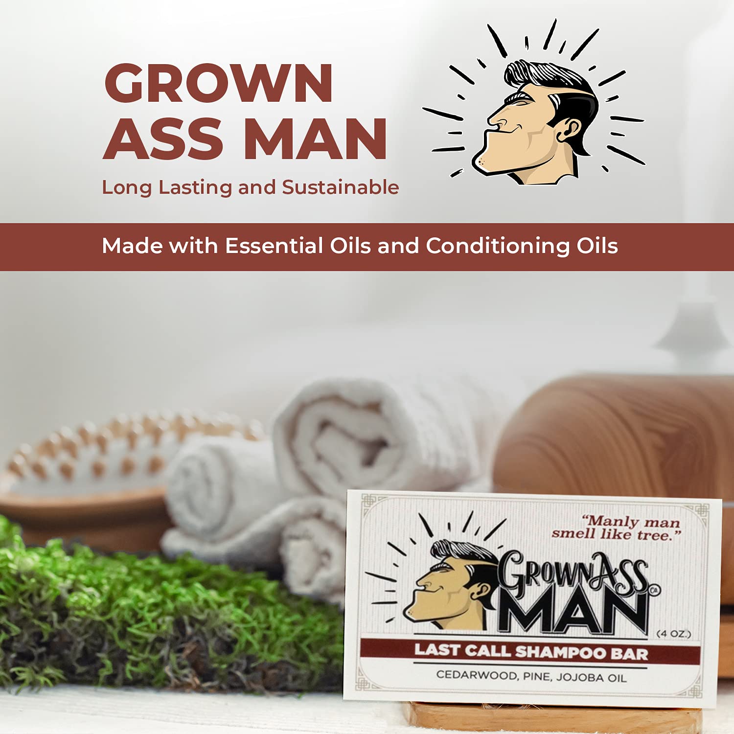 • GREAT FOR BEARDS OR AS A FULL BODY WASH. We get asked all the time if Grown Ass Man Co. Shampoo Bars work on beards. They most certainly do. (Hint: Your beard is made of hair, you magnificent bearded gentleman.) The essential oils and conditioning agents actually make it a lot more effective than just using soap on your beard, in fact. Our bars also work great as a full body soap. Our long lasting bars won't last quite as long that way - but your skin will thank you for it.