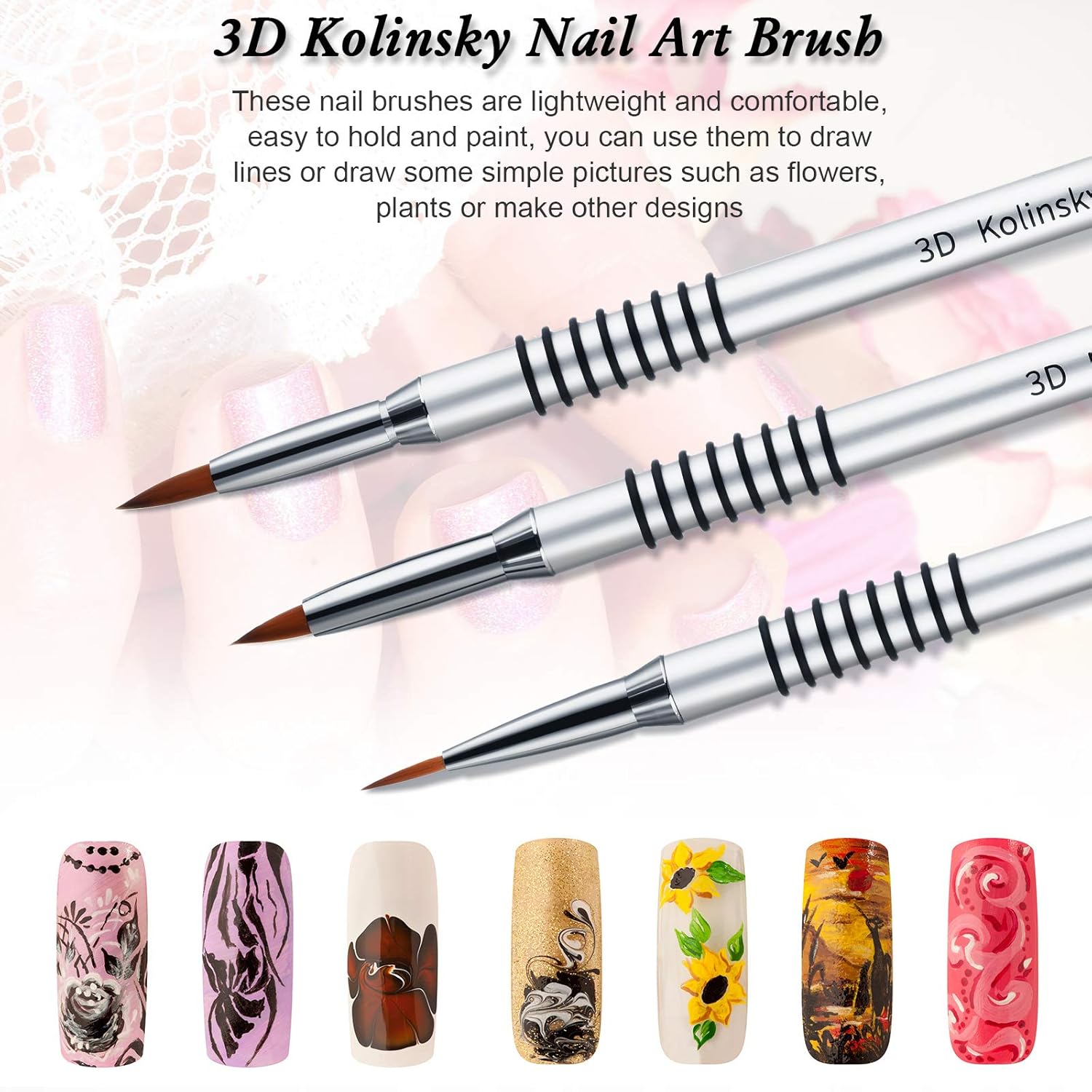 - Package includes: you will get 3 different sizes of 3D kolinsky nail art brushes, and an extra set of non-slip black ferrules, you can choose according to your needs