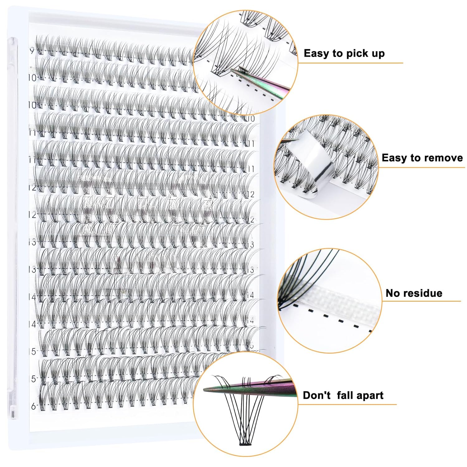 - DIY Individual Clusters at Home: 280 clusters in one tray. You can apply cluster lashes at home by yourself. Easy to put lashes on, gorgeous results, and lash clusters are not easily fall apart. Cluters take less time to complete each eye. Now save so much money and time.