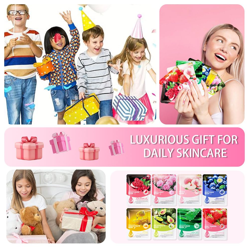 8 Pack Face Sheet Mask Skincare,Hydrating Face Mask For Sensitive Skin,Moisturize,Soothing,Nourish for All Skin Types,Natural Spa Party Facial Mask Skincare Set for Women Men Girls